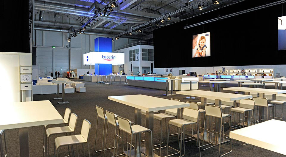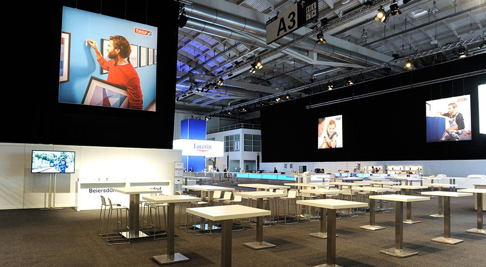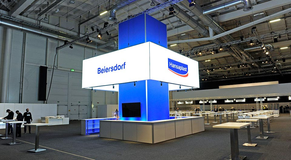 Seit vielen Jahren durften wir für Beiersdorf die Ausstattung der Jahreshaupt-versammlung im Congress Centrum Hamburg realisieren. Dabei kamen Infostände, Markenstände, diverse gestalterischen Elemente und ein wechselndes Bühnenbild zum Einsatz.